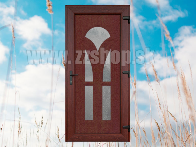 • Plastové vchodové dvere so sklom Atlas exteriérové dvere. Farebné prevedenie: orech. Najlepšie PVC dvere do domu zzshop.sk.Lacné dvojfarebné vchodové plastové dvere, imitácia dreva. Oceľové výstuže, tepelná a zvuková izolácia.