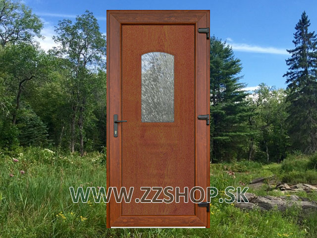 PVC vchodové dvere Jupiter DP pravé - biele, orech, zlatý dub (obojstranne), dvojfarebné (orech alebo zlatý dub + biela farba)