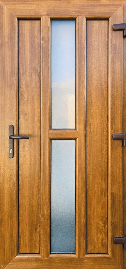 Exteriérové plastové vchodové dvere Elegance Zlatý dub vynikajú dlhoročnou životnosťou, farebnou stálosťou a nenáročnou údržbou a majú veľmi dobré tepelno-izolačné a zvukovo-izolačné vlastnosti.