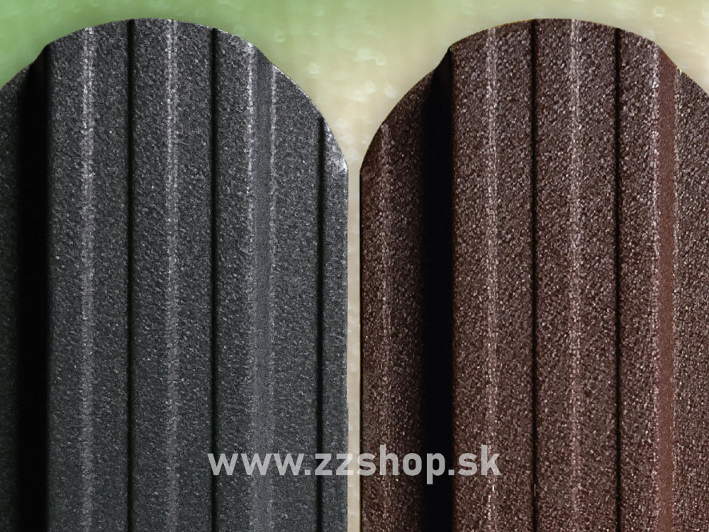 Plechové plotové dielce (plotovky) ponúkame v rôznych farebných odtieňoch v matnom prevedení (RAL 7016, 8017 a 9005, obojstranne).